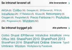 IntranetprofilerAlle virksomheder, der har bidraget til Intra2 intranet screenshot collection, fik en intranetprofil på Intra2.dk. Det var muligt at søge virksomheder frem, som bruger bestemte tekniske platforme og leverandører, se screenshots fra deres intranet og kontakte deres intranetansvarlige.