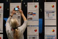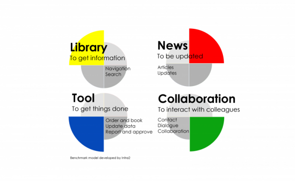 På udstillingen var der review af 42 intranetforsider med benchmark af, hvor meget plads den enkelte forside bruger på de fire formål.